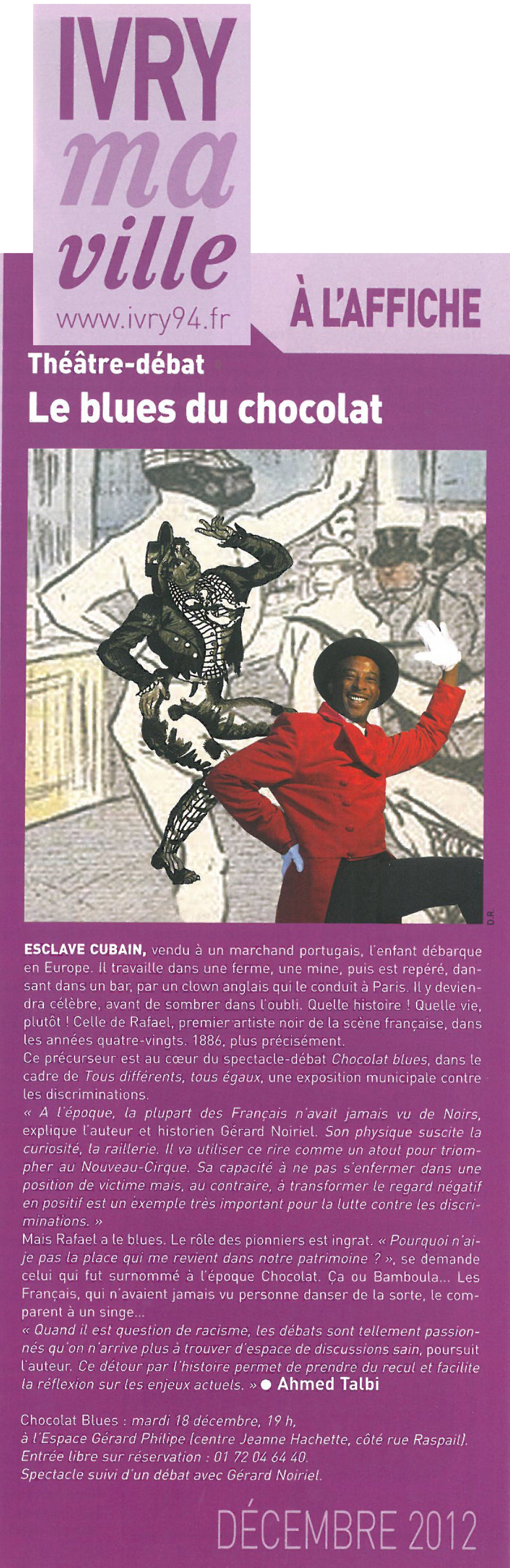 Chocolat Blues : Article dans Ivry ma ville (dec. 2012)